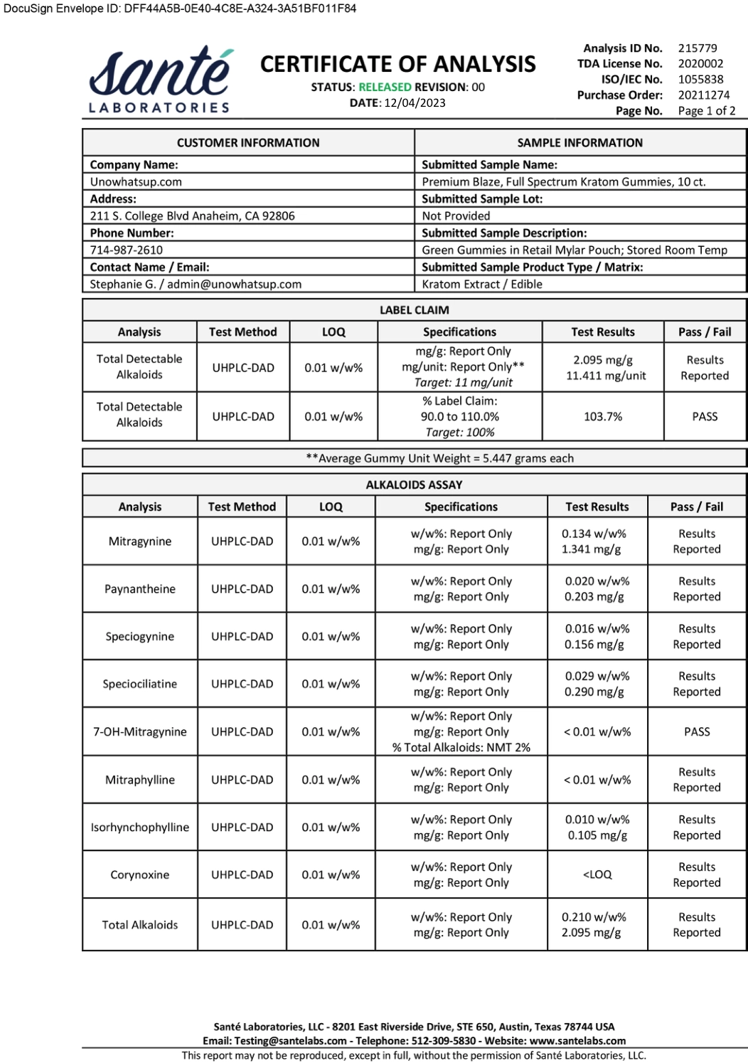 Costumer approved.