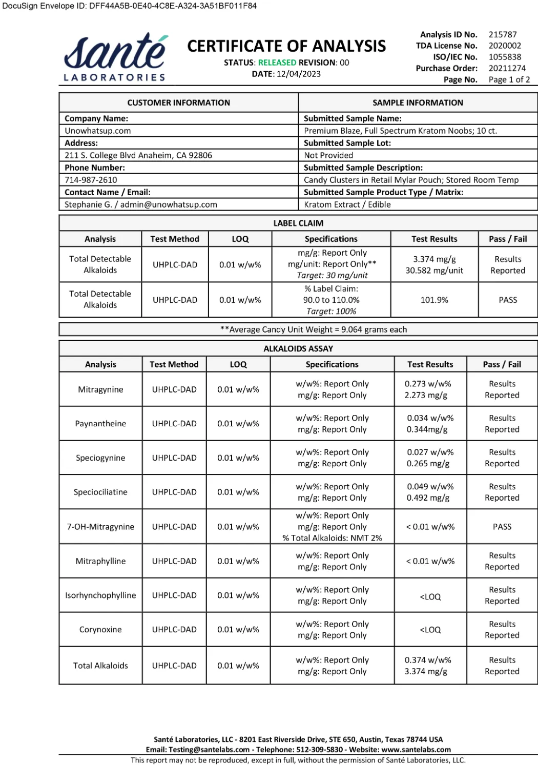 Costumer approved.